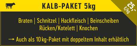 Selbstabholerpreis Kalbpaket € 28/kg - Versandpreis Kalbpaket € 28/kg.
