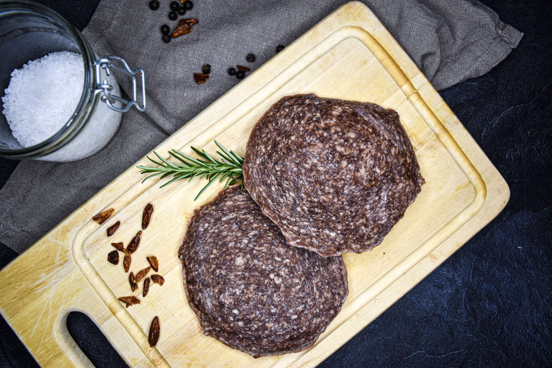Inhalt:8 St. Burger-Patties | 8 St. Rind-/Kalbsbratwürste (mit Schweinefleisch gemischt) | Steakcut ca. 500gGesamtgewicht des Paketes ca. 3kg